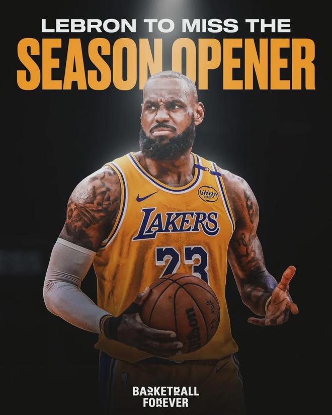 首次無緣揭幕戰(zhàn)!詹姆斯因坐骨神經(jīng)痛缺席3-4周 遭調(diào)侃抹點軒尼詩