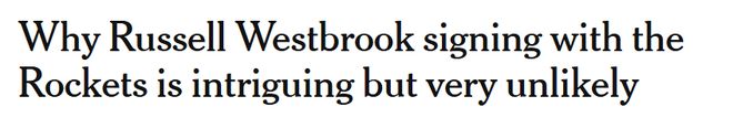 知名美媒The Athletic表示威少加盟火箭的可能性極低,并列出了三大原因——