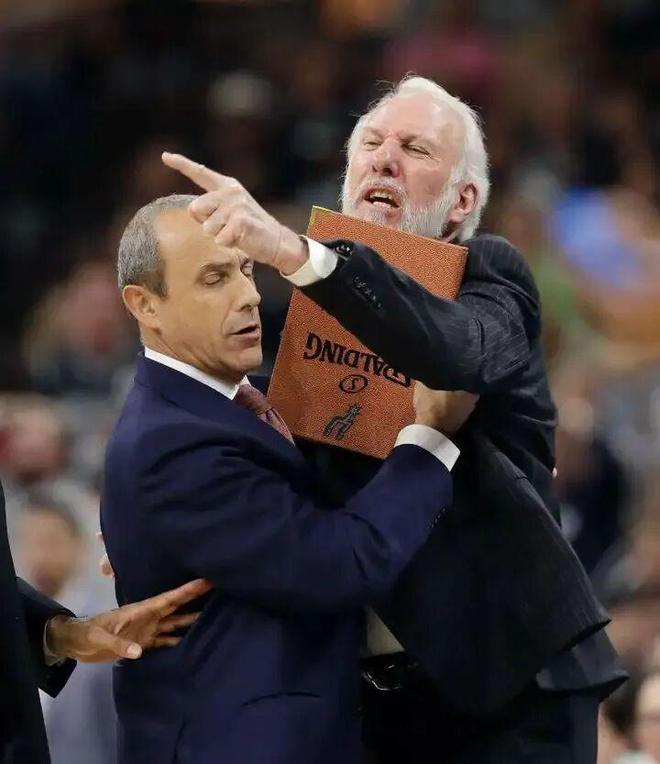 有一場比賽,波波維奇沒準備讓邦納上,叫了個暫停布置戰(zhàn)術(shù),所有人圍上來安靜聽著。